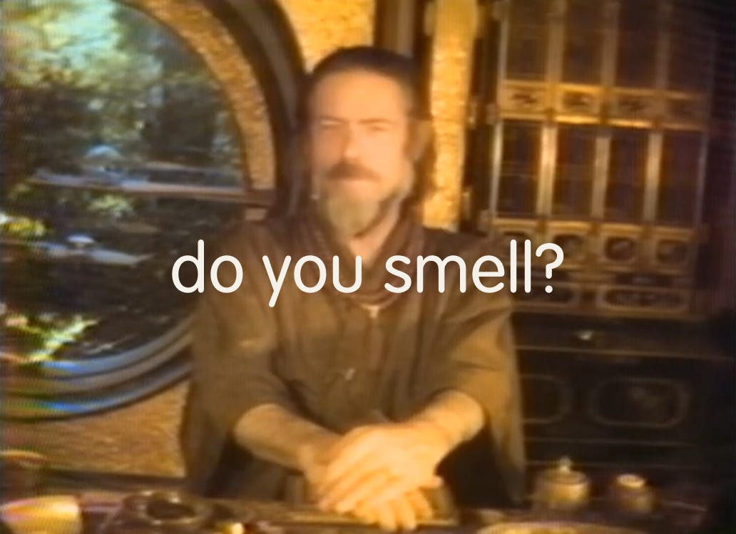 In 1972, Alan Watts sat before a Buddhist altar and delivered an iconic lecture with a delightfully odd title: Do You Smell?